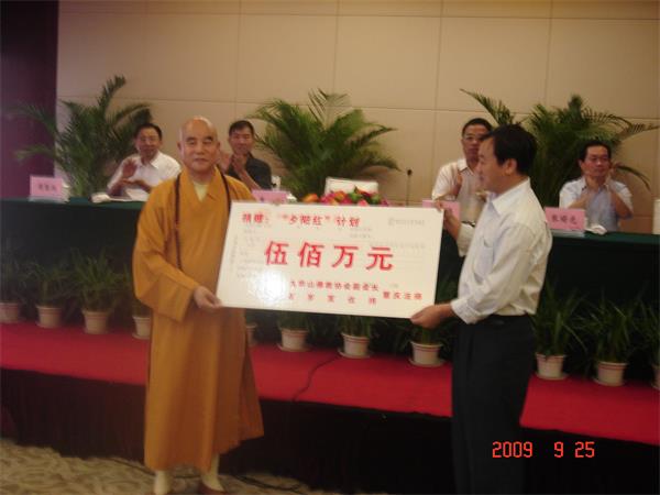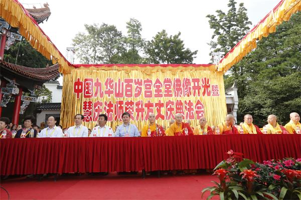 在主席臺就坐的諸位領導有廬江縣委常委、組織部、統戰部部長徐生彬先生;廬江縣關工委主任徐濟銀先生;九華山佛教協會會長、百歲...