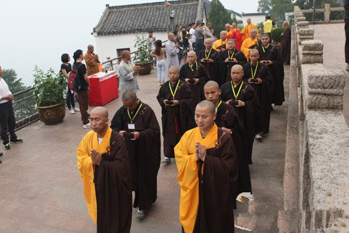 2015年5月23日(農歷四月初六),安徽九華山百歲宮傳授三壇大戒第十六天:供十師齋:請十師、供十師齋。上午十時,諸新戒于大雄...