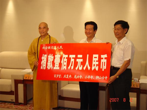 九華山佛教界舉行捐資儀式菩薩在線安徽訊2月1日,為堅決打贏疫情防控阻擊戰,九華山佛...